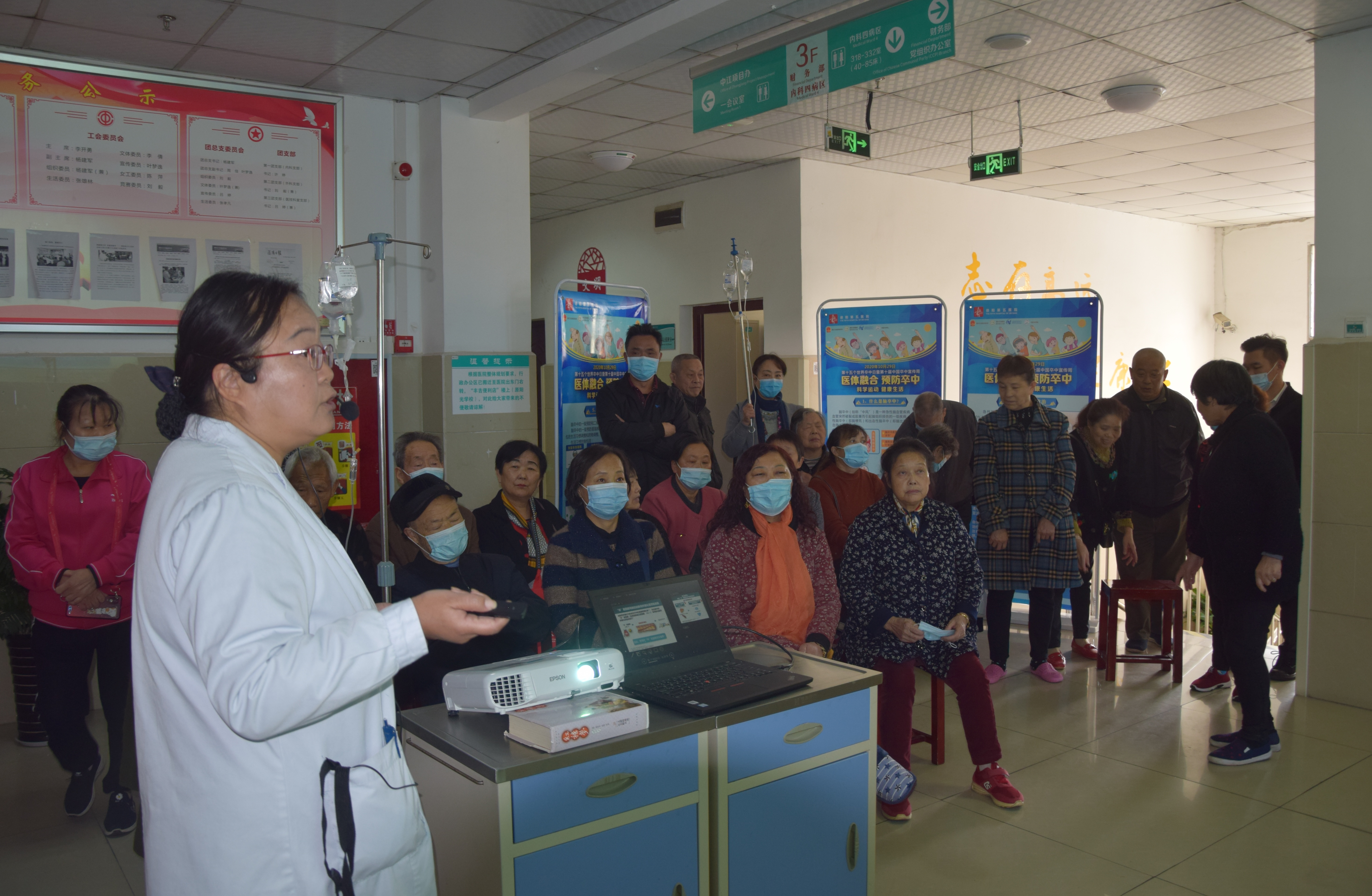 11:00義診結(jié)束后,何倩主任又在病區(qū)為大家講解腦卒中的預(yù)防,緊扣今年世界卒中日的宣傳主題“醫(yī)體融合,預(yù)防卒中”。本次活動(dòng)旨在喚起公眾對(duì)卒中的關(guān)注,普及卒中預(yù)防的知識(shí),早篩查和早診早治,減少腦卒中發(fā)生率,提高腦卒中康復(fù)率。