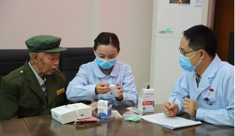 慰問中,一同暢聊“不忘初心 牢記使命”的紅色教育,并充分了解他們的訴求。醫(yī)護(hù)人員細(xì)心問候了每位老人,還悉心查看他們的身體狀況、查血壓、測(cè)血糖,細(xì)心的診療,有針對(duì)性的健康指導(dǎo),并叮囑他們?cè)谏钪幸⒁怙嬍辰】担瑸槊课焕先酥鹨唤⒘私】禉n案,并親手送上慰問品。老兵們一遍一遍的說著“感謝你們啊,謝謝醫(yī)生啊”還鄭重的向醫(yī)護(hù)人員們行軍禮,感動(dòng)了在場(chǎng)的所與人。
