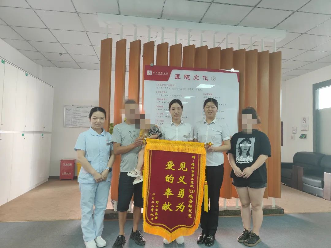 清秋九月,天氣微涼,桂花飄香,傳遞希望。“謝謝你們,多虧了你們醫(yī)院趙蘭蘭護(hù)士第一時(shí)間挺身而出、熱心幫助,我的孩子才能及時(shí)得到救治!”2023年9月4日,一位女士和一位老人抱著一名小女孩來到德陽(yáng)第五醫(yī)院護(hù)理部,為表示感謝,給護(hù)士趙蘭蘭送來“愛的奉獻(xiàn),見義勇為”的錦旗。原來,趙蘭蘭護(hù)士在前段時(shí)間的下班途中救了她的孩子。
