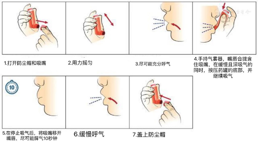 哮喘患者用藥大多為噴霧劑,要掌握噴霧劑的正確使用方法,否則既會浪費藥物又會降低藥物療效,具體使用方法可參見說明書,網(wǎng)上也有相應(yīng)教學(xué)視頻,或者咨詢醫(yī)生或護(hù)士,總之使用過程中深吸氣,盡可能憋住氣,緩慢呼氣。